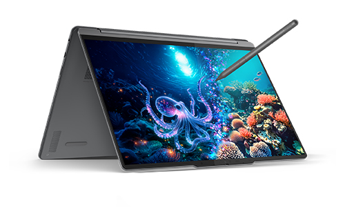 Štýlový 16″ notebook z radu Yoga Pro s procesormi Intel Core Ultra, navrhnutý pre kreatívnu prácu, ktorý ponúka vyvážený výkon pre náročné úlohy.